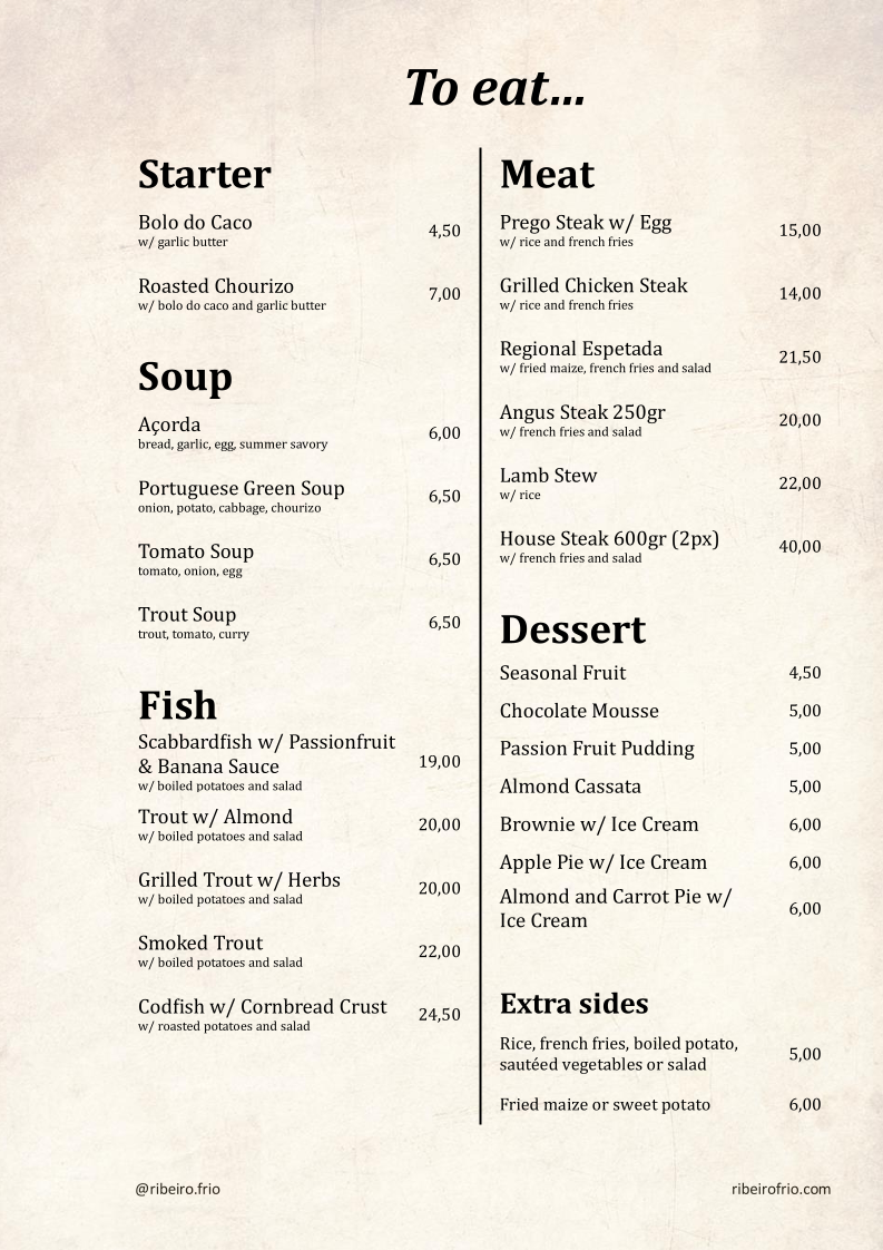 Ribeiro Frio Restaurant dá-lhe as boas-vindas ao seu espaço gastronómico em Ribeiro Frio, Santana, Madeira, onde a tradição e a natureza se encontram num ambiente acolhedor. Somos um restaurante português focado em pratos tradicionais madeirenses e europeus, destacando especialidades como truta fresca, espetadas, caldo verde e bolo do caco, confeccionados com ingredientes locais e sabores autênticos. A nossa localização privilegiada junto à floresta Laurissilva e à Vereda dos Balcões torna-nos um destino ideal para quem visita Santana e procura uma experiência culinária com vista panorâmica e ambiente tranquilo. Com serviço profissional, refeições saborosas e uma ligação forte à identidade local.